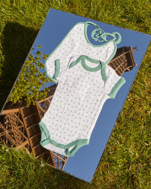 The soft and comfortable body is perfect for playtime or relaxation at home, while the practical bib protects baby's clothes during meals. With its Eiffel Tower motif, each piece in this set evokes the charm and elegance of Paris, adding a touch of French style to baby's wardrobe.