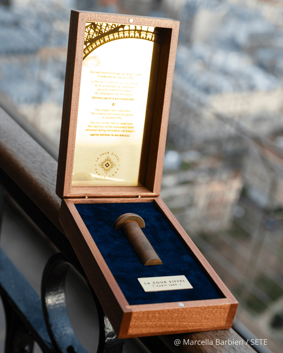 With its historical aura and emotional resonance, this rivet will appeal to enthusiasts of the Eiffel Tower, lovers of Paris, and collectors of exceptional objects. It is a meaningful and distinctive gift, offering a symbol of French history. Offer a truly exceptional piece with the Official Eiffel Tower Rivet.