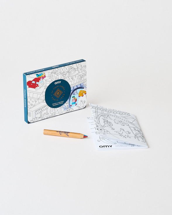 Visit the impressive Eiffel Tower, the historic symbol of the French capital! Original Pocket coloring in collaboration with SETE ©Société d'Exploitation de la Tour Eiffel. Limitless artistic space with the 4-color multi-mineral pencil, allowing you to change hue in an instant. You can take it everywhere: on the move, in restaurants, in your suitcase...