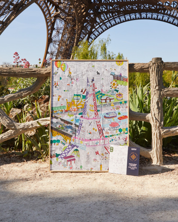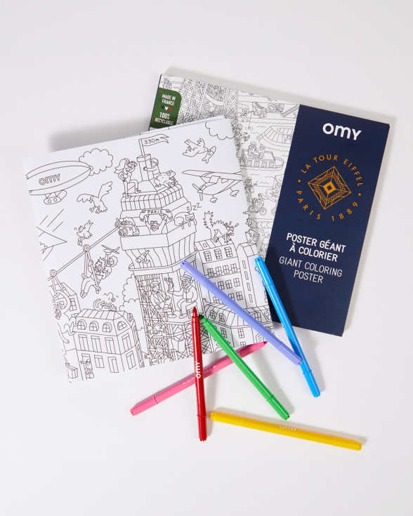 Discover our exclusive coloring poster of the Eiffel Tower, made in France by OMY: an invitation to a graphic journey full of humor and details. This giant poster of 70x100 cm offers a limitless artistic space, ideal for playing and coloring alone or with others. The drawing, rich in details and fun, captures the essence of Paris with vibrant scenes around the Eiffel Tower, offering hours of creative entertainment. Unfold on the floor, on a table, or hang on the wall once finished, this poster becomes a personalized work of art.