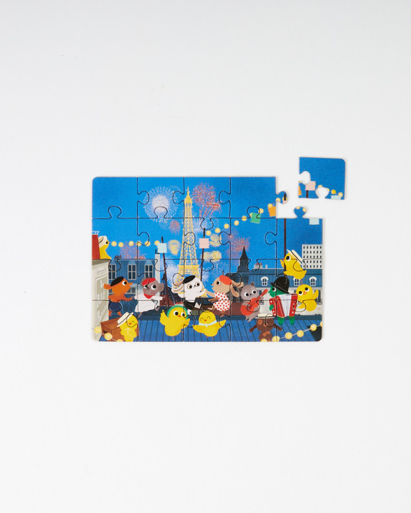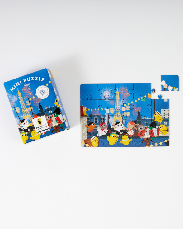 Discover the "Paris by night" mini puzzle from Pirouette Cacahouète! Immerse yourself in the heart of the City of Light with this charming nocturnal reconstruction where animals party all night long on the rooftops of Paris. Made up of 20 pieces, this puzzle offers a moment of relaxation and pleasure while stimulating concentration and dexterity. Made in France and illustrated by Marie Paruit, this puzzle is perfect for a gift or family activity. Let yourself be enchanted by the magic of Paris with every piece you put together!