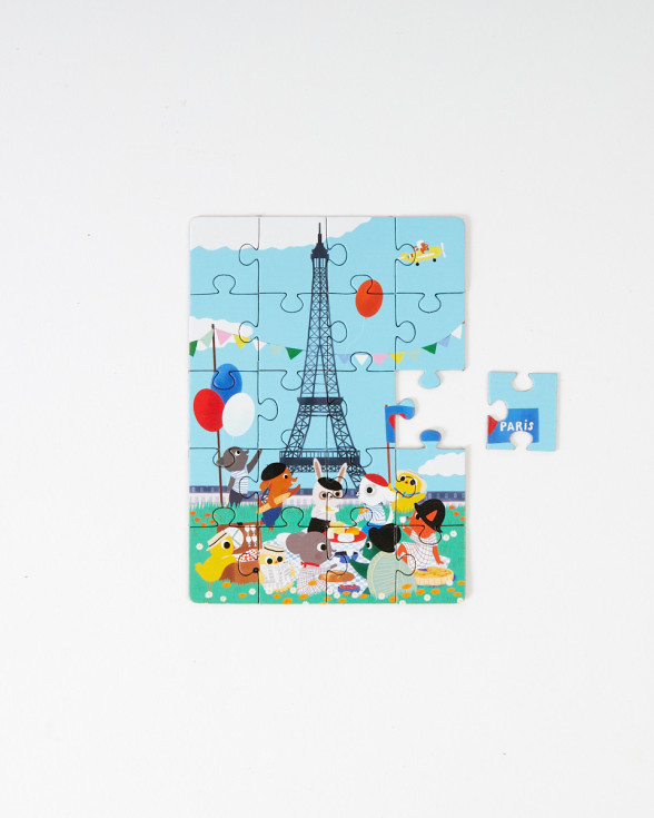 Discover the "Eiffel Tower" mini-puzzle from Pirouette Cacahouète! This charming puzzle, beautifully illustrated by Marie Paruit, features little animals sharing a good meal on the Champ-de-Mars, with the Eiffel Tower in the background. Packaged in a small cardboard box, this puzzle is ideal for giving as a gift or enjoying a moment of relaxation with the family. Immerse yourself in the magic of Paris with every piece you assemble!
