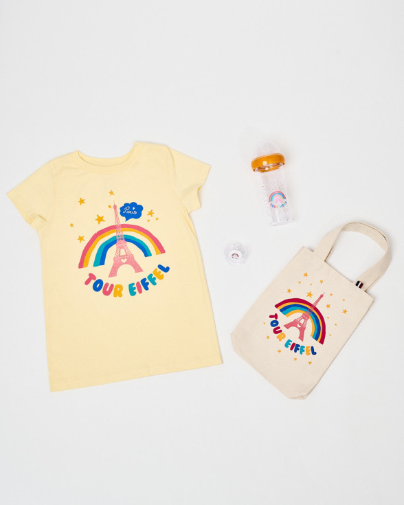 Discover the magic of Paris with this enchanted mini yellow snow globe featuring the Eiffel Tower, specially designed for children. Part of our Rainbow Enchanted collection for kids, this snow globe combines the majesty of the Eiffel Tower with the magic of a rainbow. Each shake reveals a whirl of shimmering glitter dancing around the Eiffel Tower, reminiscent of its sparkling brilliance in the Parisian night. Its rainbow-colored base adds a cheerful and vibrant touch, captivating the imagination of young dreamers.