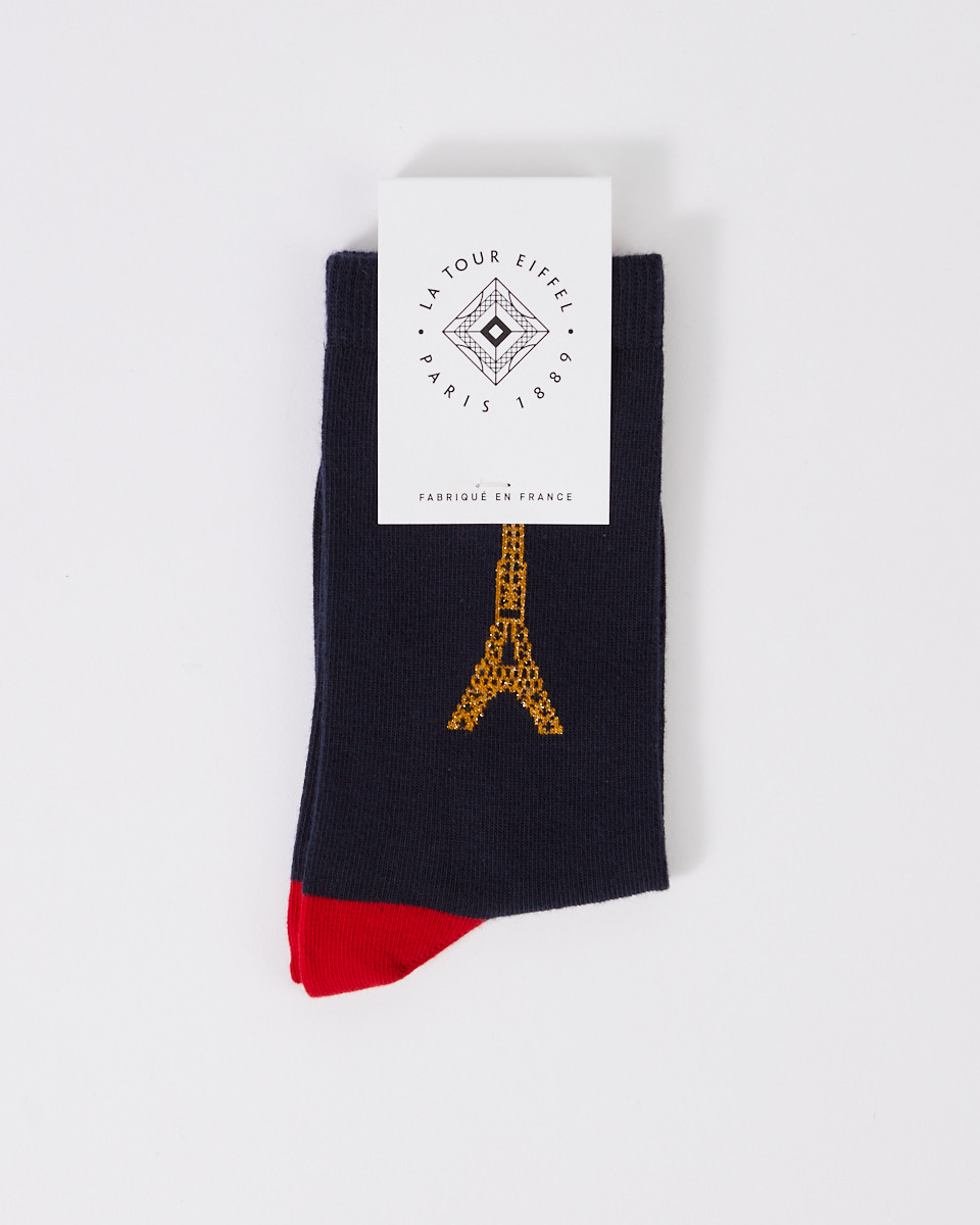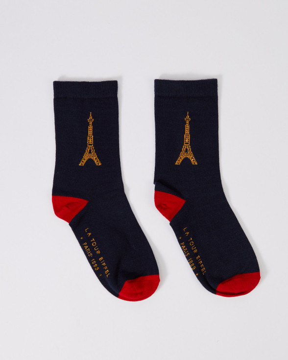 Treat yourself to a practical and stylish souvenir from Paris with our navy blue socks featuring the Eiffel Tower, and let your love for the City of Light shine with every step. An essential accessory for all lovers of Paris.