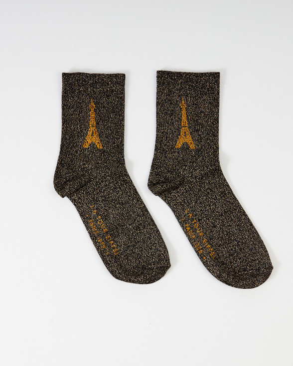 Añade un toque de glamour a tu estilo con nuestros calcetines negros de purpurina con la Torre Eiffel. Perfectos para las amantes de la moda que desean conservar un recuerdo brillante de París, estos calcetines añaden una dosis de fantasía a sus conjuntos. Un artículo imprescindible para todas las fashionistas que buscan recuerdos brillantes.