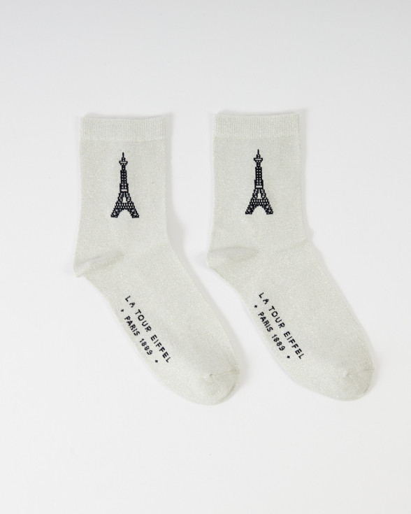 Añade un toque de glamour a tu estilo con nuestros calcetines de purpurina plateada con la Torre Eiffel. Perfectos para las amantes de la moda que desean conservar un recuerdo brillante de París, estos calcetines añaden una dosis de fantasía a sus conjuntos. Un artículo imprescindible para todas las fashionistas que buscan recuerdos brillantes.