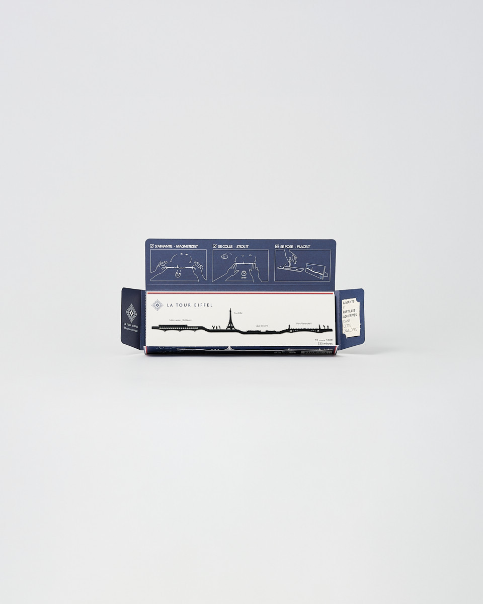 | Información adicional | The Line Mini se fija con dos almohadillas adhesivas de 3 mm, se imanta en superficies metálicas o se coloca en su soporte de cartón que se mantiene erguido como un marco. Producto acondicionado en un ESAT francés. |