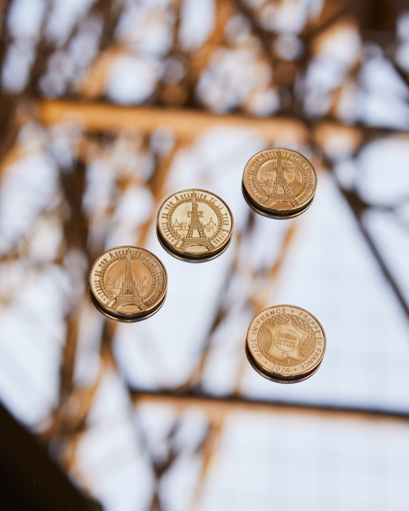 Inmortaliza la experiencia excepcional de tu visita a la cima de la Torre Eiffel con nuestra moneda de la Ascensión, una pieza de colección exclusiva. Esta moneda exquisita, acuñada en metal, representa la majestuosa Torre Eiffel, simbolizando el logro definitivo de tu ascenso.