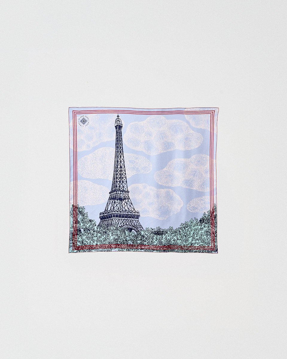 Descubre el pañuelo de seda Torre Eiffel de día de Malfroy Million, una pieza refinada que aúna elegancia y arte. Perfecto para llevar al cuello, en el cabello o en un bolso, ofrece una versatilidad excepcional.