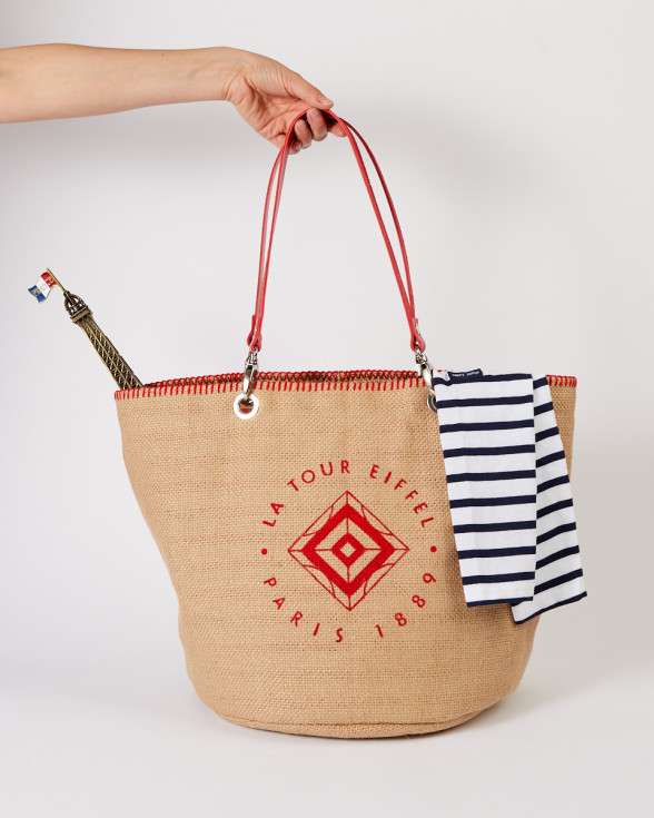 Découvrez la version décontractée de notre cabas Tour Eiffel x SAINT JAMES, fabriqué en toile de jute 100 % naturel dans un atelier situé en Normandie, incarnant l’essence du chic parisien et de l’artisanat français.