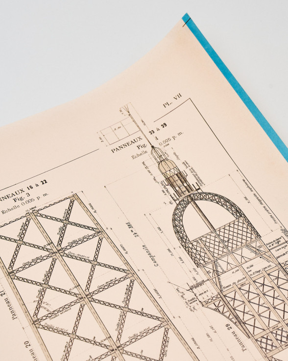 Le plan « Ossature » met en avant la charpente métallique imaginée par Gustave Eiffel, véritable prouesse technique de son époque. Un dessin fascinant qui révèle la beauté brute de l’ingénierie. Une pièce forte pour sublimer un intérieur avec caractère. Ce plan a été imprimé en 300 exemplaires uniques.