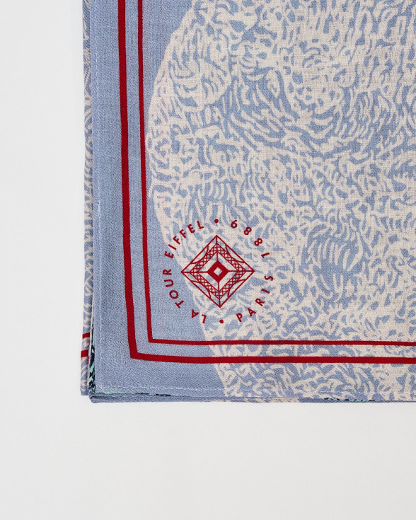 Découvrez l'étole Tour Eiffel de jour de Malfroy Million, un accessoire élégant fabriqué en laine et en soie, orné d'un magnifique dessin de la Tour Eiffel de jour.