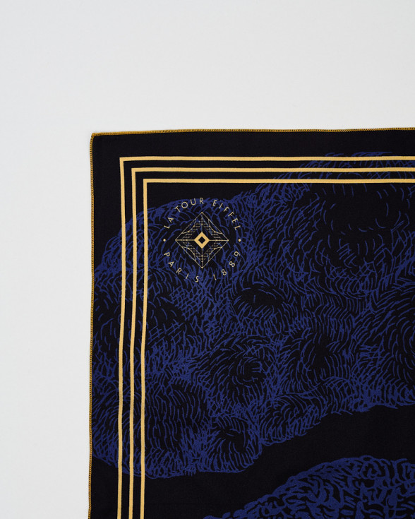 Découvrez le carré de soie Tour Eiffel de nuit de Malfroy Million, une pièce raffinée qui allie élégance et art. Idéal pour le nouer autour du cou, dans les cheveux ou sur un sac, il offre une polyvalence exceptionnelle.
