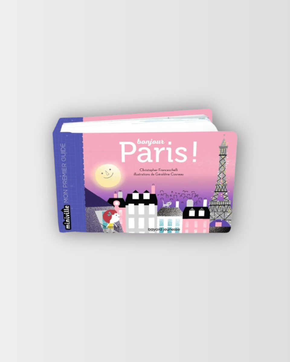 Bonjour Paris propose dans un mini format : une carte dépliante, des découpes et un véritable voyage dans les endroits-clé d'une grande ville, vue à hauteur d'enfant. Paris est une ville qui regorge de surprises. Aux Champs-Élysées, les voitures roulent à toute vitesse, à Montmartre, les peintres dessinent dans les rues et la nuit, la majestueuse tour Eiffel s'illumine.