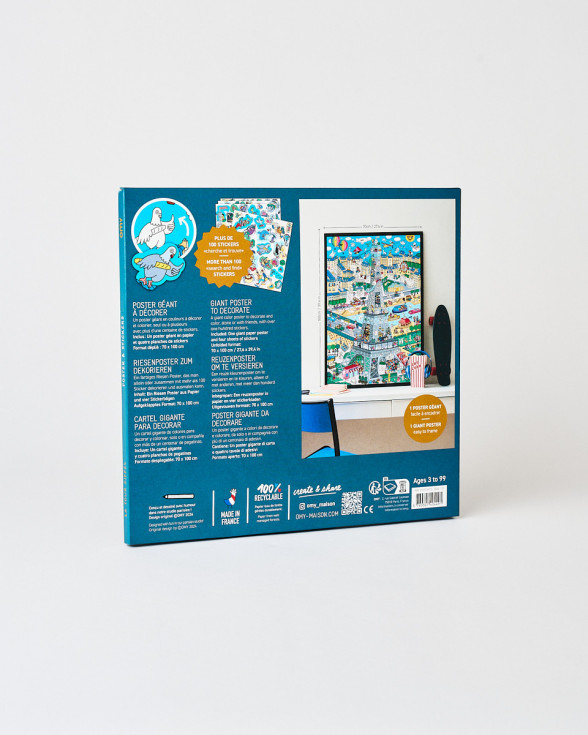Créé et imprimé en France, ce poster géant à colorier s’accompagne de 100 stickers pour inventer Paris autour de la tour Eiffel. Une activité ludique et décorative à partager en famille.