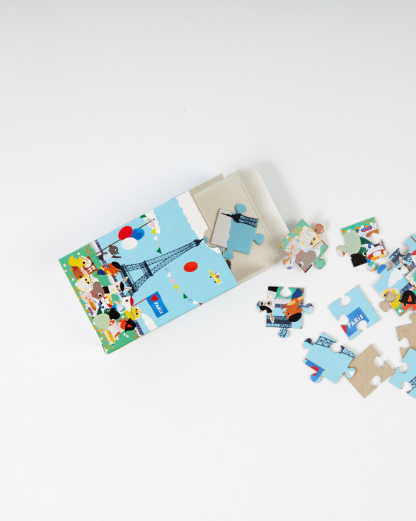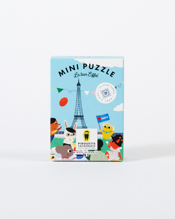 Découvrez le mini puzzle « La tour Eiffel » de Pirouette Cacahouète ! Ce charmant puzzle, joliment illustré par Marie Paruit, met en scène de petits animaux partageant un bon repas sur le Champ-de-Mars, avec la tour Eiffel en arrière-plan. Emballé dans une boîte en carton, ce puzzle est idéal pour offrir ou pour profiter d'un moment de détente en famille. Plongez au cœur de la magie parisienne avec chaque pièce que vous assemblez !