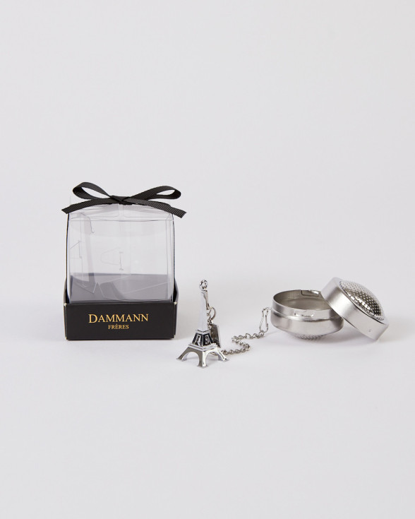 Dégustez votre thé avec style grâce à cet infuseur à thé Dammann Frères, agrémenté d'une mini tour Eiffel en acier inoxydable à l'extrémité de sa chaînette. Cet infuseur est le compagnon parfait pour tous les amateurs de thé qui souhaitent ajouter une touche parisienne à leur rituel de dégustation.